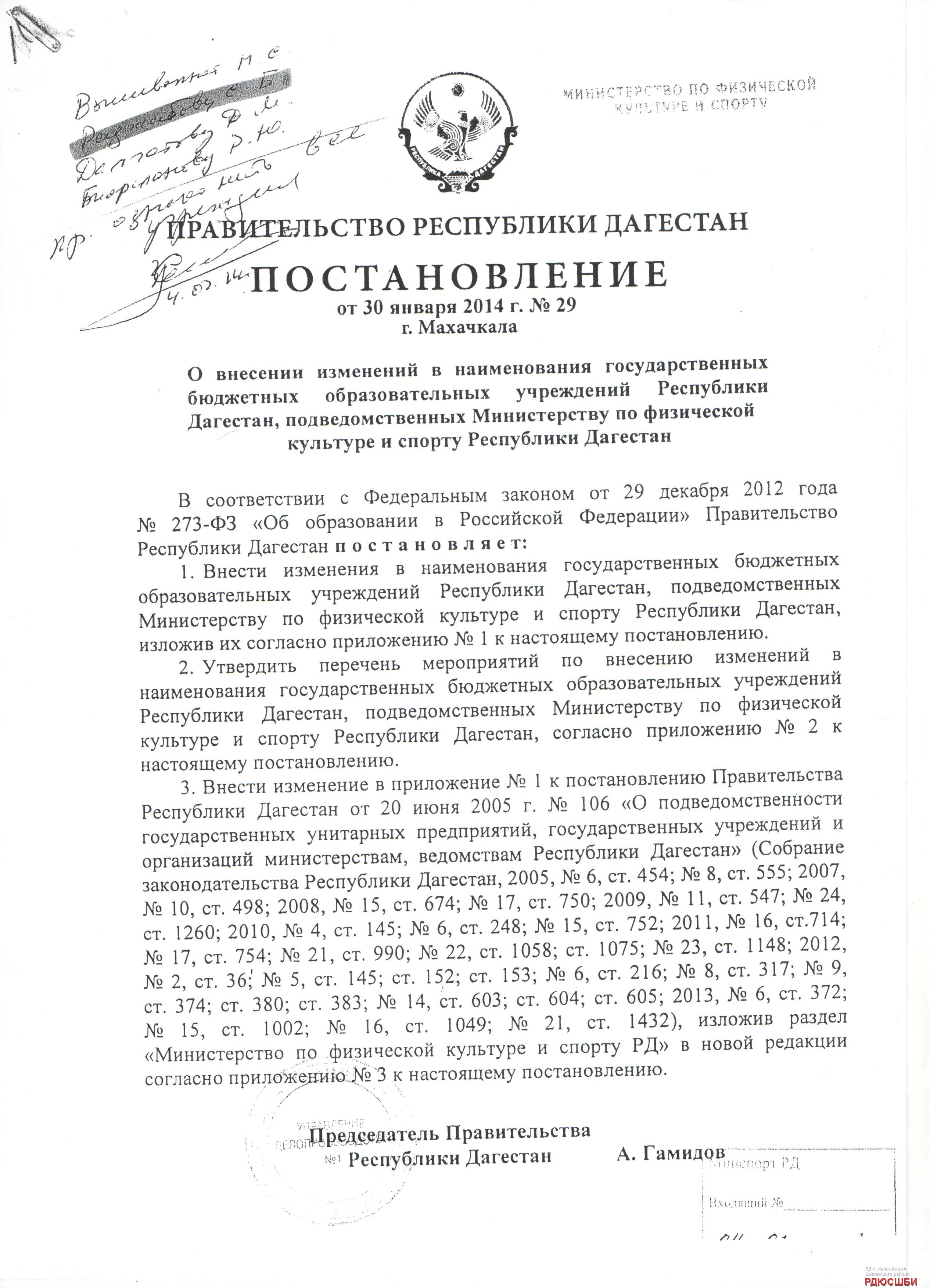 Главная → Фотогалерея → Документы → Постановление Правительства о внесении изменений в название учреждения