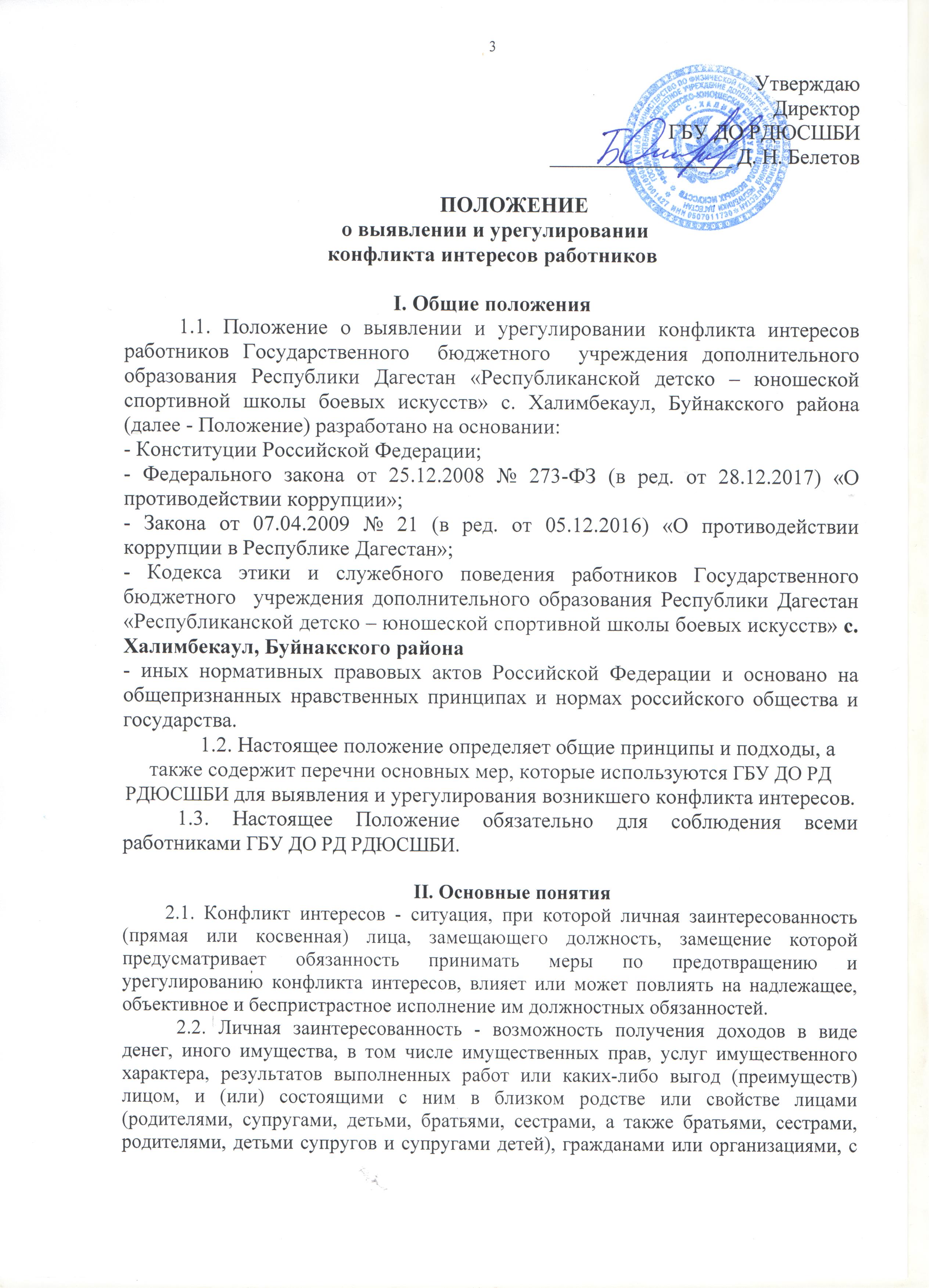 Положение о выявлении и урегулировании конфликта интересов работников школы